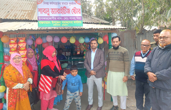 উপজেলা সমাজ সেবা অধিদপ্তরের উদ্যোগে এককালীন ৪০হাজার টাকার বিভিন্ন রকমের মালমাল দিয়ে দোকান সাজিয়ে তাকে পূর্ণবাসন করা হয়।