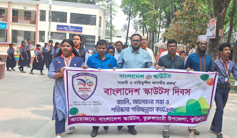 ‘সাহসী ও দায়িত্বশীল আগামীর প্রজন্ম’- প্রতিপাদ্যে কুড়িগ্রামের ভূরুঙ্গামারীতে বাংলাদেশ স্কাউটস দিবস পালিত হয়েছে। দিবসটি পালন উপলক্ষে র্যালি, আলোচনা সভা ও পরিষ্কার পরিচ্ছন্নতা কার্যক্রম পরিচালিত হয়। বাংলাদেশ স্কাউটস, ভূরুঙ্গামারী উপজেলা শাখা এ কর্মসূচীর আয়োজন করে।