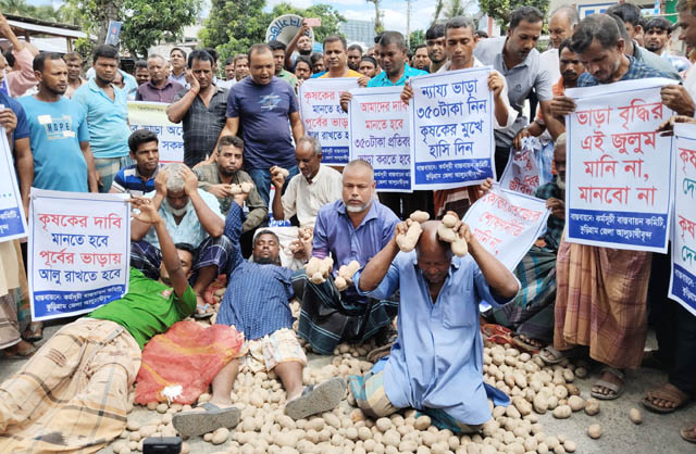 তারা আরও জানান, আলুর বীজ, সার ও কীটনাশকের দাম বৃদ্ধির ফলে প্রতি কেজি আলু উৎপাদনে ব্যয় হয়েছে ২২ টাকা। বর্তমানে প্রতি কেজি আলুতে হিমাগার ভাড়া নির্ধারণ করা হয়েছে ৬ টাকা ৭৫ পয়সা। এবছর উৎপাদন খরচ ও হিমাগার ভাড়াসহ সবমিলে প্রতি কেজি আলুতে খরচ পড়বে ২৯ টাকা। আর বর্তমানে বাজারে আলু বিক্রি হচ্ছে ১৫ টাকা কেজি দরে। এতে প্রতি কেজি আলুতে লোকসান গুনতে হচ্ছে ১৪ টাকা। এ অবস্থায় চরম ক্ষতির মুখে পড়ায় হিমাগারে প্রতিকেজি আলুর ভাড়া ৫ টাকা নির্ধারণের দাবি জানান তারা।