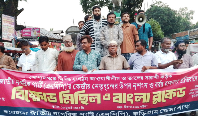 গোপালগঞ্জের ঘটনায় কুড়িগ্রামে এনসিপি’র বিক্ষোভ মিছিল ও বাংলা ব্লকেড