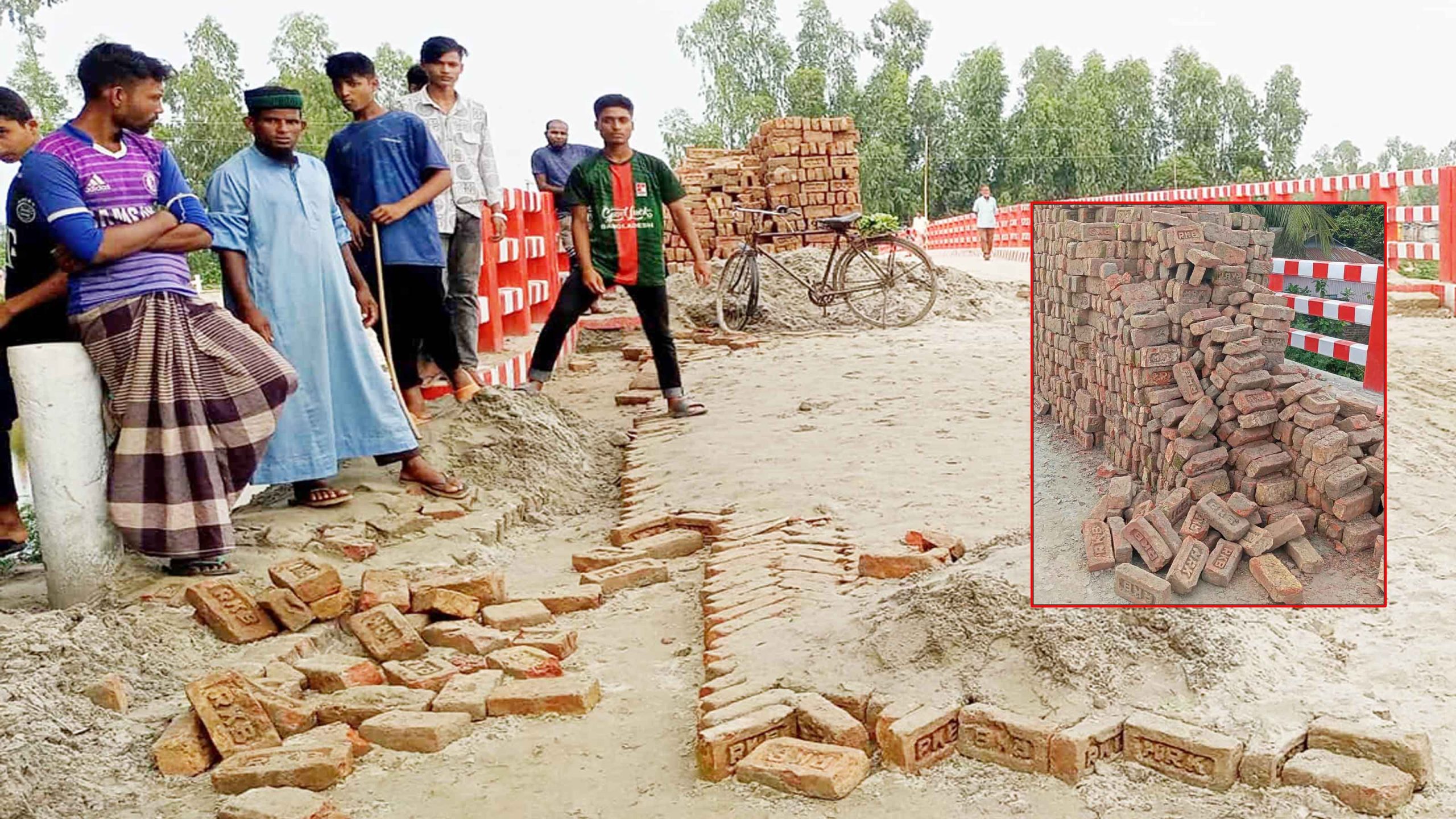 এলাকাবাসীর বাঁধার মুখে এলজিইডি কর্তৃপক্ষ কিছু বাতিল করলেও পরে ঠিকাদার প্রতিষ্ঠান না সরিয়ে কৌশলে সেগুলো কাজে লাগায়। অবশেষে ব্রীজের সংযোগ সড়ক এইচবিবি (হেরিং বোন) নির্মানে রাতের আধারে নিম্ন মানের ইট বসিয়ে কাজ সমাপ্ত করার চেষ্টা করলে টের পেয়ে শুক্রবার সকালে বাঁধা দেন এলাকাবাসী। এলাকাবাসীর বাঁধার মুখে কাজ বন্ধ করতে বাধ্য হন ঠিকাদার প্রতিষ্ঠান। পরে উপজেলা প্রকৌশলী সরেজমিন ঘুরে ইট সরিয়ে নিতে আদেশ দেন।