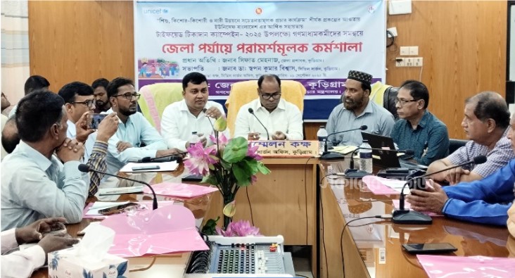 “শিশু, কিশোর-কিশোরী ও নারী উন্নয়নে সচেতনতামুলক প্রচার কার্যক্রম” কর্মসূচির আওতায় ইউনিসেফ বাংলাদেশ’র আর্থিক সহায়তায় কুড়িগ্রামে টাইফয়েড টিকাদান ক্যাম্পেইন-২০২৫ উপলক্ষে গণমাধ্যমকর্মীদের সাথে জেলা পর্যায়ে পরামর্শমুলক কর্মশালা অনুষ্ঠিত হয়েছে।