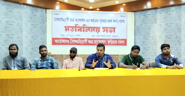 বৈষম্যবিরোধী ছাত্র আন্দোলনের কার্যক্রম পুনরায় সক্রিয় করার লক্ষ্যে কুড়িগ্রামে মতবিনিময় সভা অনুষ্ঠিত হয়েছে। মঙ্গলবার (১৮ নভেম্বর) সকাল ১১টায় কুড়িগ্রাম জেলা পরিষদ হলরুমে অনুষ্ঠিত এ সভায় সংগঠনের জেলা পর্যায়ের নেতৃবৃন্দসহ বিভিন্ন শিক্ষা প্রতিষ্ঠানের শিক্ষার্থীরা অংশ নেন। মতবিনিময় সভার আয়োজন করে কুড়িগ্রাম জেলা বৈষম্যবিরোধী ছাত্র আন্দোলন।