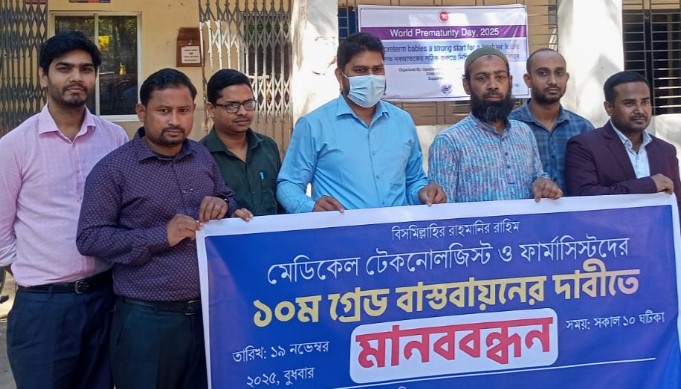 চিলমারীতে মেডিকেল টেকনোলজিস্টদের মানববন্ধন